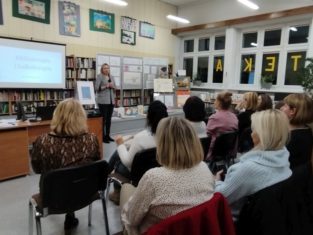 12.11.2024 mieliśmy przyjemność gościć w naszej bibliotece panią Gabrielę Wiktorczyk, biblioterapeutę z Polskiego Towarzystwa Biblioterapeutycznego. Pani Wiktorczyk przeprowadziła warsztaty pt. „Biblioterapia i bajkoterapia w procesie terapeutycznym. Spotkanie odbyło się w ramach zadania realizowanego z Budżet Obywatelski Województwa Łódzkiego na rok 2024 p.n. „Biblioterapia wzmacnia zdrowie psychiczne i fizyczne.”